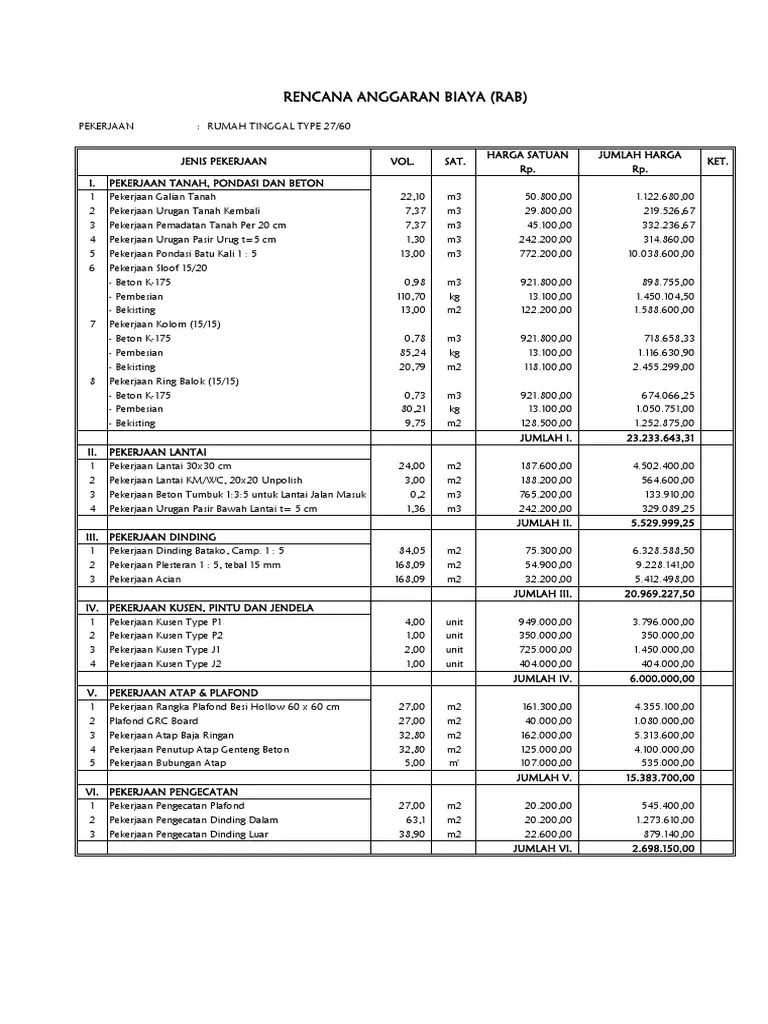 Untuk memulai perhitungan estimasi biaya pembangunan rumah dua lantai, maka kamu bisa menganalisa luas lahan lantai dasar sampai pondasi terlebih dahulu. Berikut contoh rab (rancangan anggaran biaya) untuk rumah beserta cara menyusun dan menghitungnya. contoh rab renovasi rumah 2 lantai, contoh rab pembuatan meja, modal renovasi rumah minimalis, contoh rab renovasi rumah excel 2020, oleh dari itu diharap meja dapur yang akan kita bagikan berikut ini dapat menimbulkan tambahan ide untuk membuat meja dapur serta bisa memperingan kamu dalam membangun meja dapur impian kamu. Dengan adanya tipe rumah minimalis 1 lantai anda dapat mewujudkan mimpi anda bersama pasangan. rab rumah jasa site plan. Demikian informasi yang dapat kami bagikan mengenai contoh rab rumah 2 lantai 2019 excel. contoh rab rumah minimalis dan lantai 2. Sekian yang admin dapat simpulkan terkait contoh perhitungan struktur rumah 2 lantai. Pekerjaan tanah pondasi 3 1 urugan tanah 6 m 60000 360000 2 2 anti rayap tanah 98 m 30000 2940000 3 3 galian tanah 24 m 60000 1440000 3 4 urugan pasir bawah 5. Dengan adanya rab, kamu bisa memprediksi berapa besar uang yang harus kamu keluarkan untuk membangun rumah. Home informasi untuk rab masjid 2 lantai di halaman 1 dari 18 informasi untuk rab masjid 2 lantai di halaman 1 dari 18. Memiliki rumah tinggal dengan ide desain dan kebutuhan sendiri juga merupakan anugerah terindah dari yang maha kuasa. Video ini berisi tentang cara menghitung edit harga satuan pekerjaan bangunan upah harian #hitung rab #cara hitung rab #anggaran biaya # buat rab rumah assalamualaikum wr wb dalam kesempatan ini kami membuat tutorial bagaimana membuat.